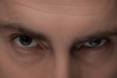 Złe oko. Człowiek z czerwonymi demonicznymi oczami, zbliżenie