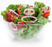 Grecka sałatka na białym talerzu odizolowana na białym tle. Plik zawiera ścieżkę wycinania.