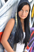 dziewczyna o ścianę z graffiti
