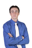 bliska dobrze ubrany biznesmen z skrzyżowanymi rękami