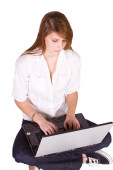 piękna dziewczyna trzyma laptopa