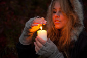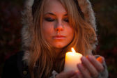 młoda kobieta, patrząc na świeczkę