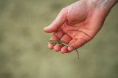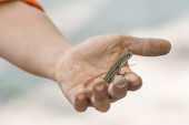 Motyl Agama jaszczurki (Leiolepis Cuvier) w ręku, Tajlandia