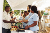 Zdjęcie "Czarna kobieta pomaga klientowi w sklepie spożywczym, promując lokalnie uprawiane i ekologiczne produkty. Komunikują się i wykorzystują technologię dla efektywnego procesu realizacji zamówień na rynku przyjaznym dla środowiska." może być wykorzystywane do celów osobistych i komercyjnych zgodnie z warunkami zakupionej licencji Royalty-free. Obraz jest dostępny do pobrania w jakości wysokiej rozdzielczości do 5760x3840.
