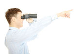 biznesmen patrząc przez lornetki i jest skierowany do przodu