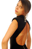 piękna brunetka w eleganckie suknie wieczorowe