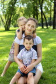 Piękne dzieci i mama w parku, kwiat i obecnie. Mothe