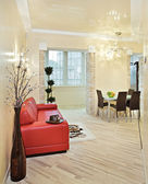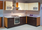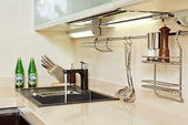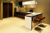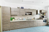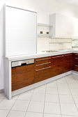 część nowoczesna kuchnia wnętrz z szafką w ciepłych kolorach