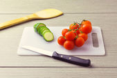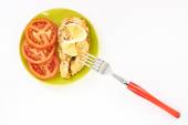Ogórek i pomidor w zielony talerz