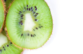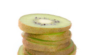 plasterki z zielony kiwi kiwi owoc na białym tle