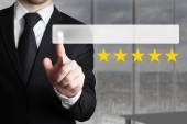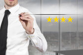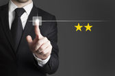 biznesmen popychając płaskie przycisk trzy złote gwiazdki