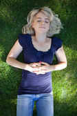 Zdjęcie "Szczęśliwa młoda kobieta, leżąc na trawie" może być wykorzystywane do celów osobistych i komercyjnych zgodnie z warunkami zakupionej licencji Royalty-free. Obraz jest dostępny do pobrania w jakości wysokiej rozdzielczości do 5760x3840.