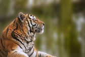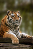 beauttiful obraz piękny tygrysa cub relaksujący na trawiastym kopiec ponownie
