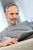 Zdjęcie "Atrakcyjny mężczyzna na tabletki" może być wykorzystywane do celów osobistych i komercyjnych zgodnie z warunkami zakupionej licencji Royalty-free. Obraz jest dostępny do pobrania w jakości wysokiej rozdzielczości do 5760x3840.