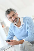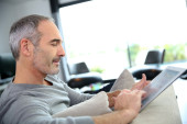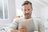 Zdjęcie "Atrakcyjny mężczyzna na tabletki" może być wykorzystywane do celów osobistych i komercyjnych zgodnie z warunkami zakupionej licencji Royalty-free. Obraz jest dostępny do pobrania w jakości wysokiej rozdzielczości do 5760x3840.