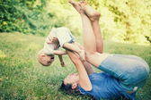 Szczęśliwa dziewczynka przytulanie matka na białym tle na biały deseń