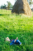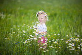 dziewczynka w dziedzinie żółte kwiaty