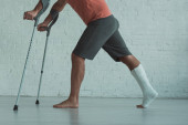 Człowiek z protezą nogi znajduje spokój siedząc na ławce w siłowni, zastanawiając się nad swoją siłą i odpornością..