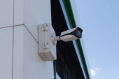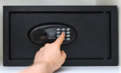 Osoba korzystająca z klawiatury kontroli dostępu, domofon.