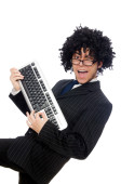 biznesmen z laptopem w biurze.