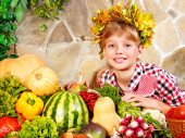 dziecko z warzyw na kuchni.
