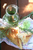 Okroshka z Kwas Chlebowy w drewniane miski i drewnianą łyżką