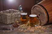 Dzbanek z Kwas Chlebowy, chleb żytni i okroshka w misce drewniane