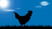 Kogut weathervane przed wschodem słońca z jaskrawymi kolorami w chmury, koncepcja za wcześnie rano obudzić