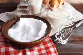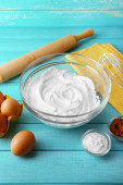 Zdjęcie "Bitą białka dla krem na kolor drewniane tła" może być wykorzystywane do celów osobistych i komercyjnych zgodnie z warunkami zakupionej licencji Royalty-free. Obraz jest dostępny do pobrania w jakości wysokiej rozdzielczości do 5760x3840.