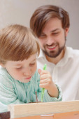 Zdjęcie "Ojciec i syn za pomocą linijki" może być wykorzystywane do celów osobistych i komercyjnych zgodnie z warunkami zakupionej licencji Royalty-free. Obraz jest dostępny do pobrania w jakości wysokiej rozdzielczości do 5760x3840.