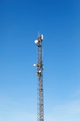 Zdjęcie "Wieża radiowo-telewizyjna z anteny nad niebieski niebo." może być wykorzystywane do celów osobistych i komercyjnych zgodnie z warunkami zakupionej licencji Royalty-free. Obraz jest dostępny do pobrania w jakości wysokiej rozdzielczości do 5760x3840.