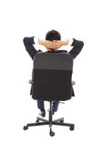 spokojny młody biznesmen, siedząc w fotelu na białym tle