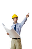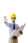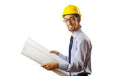 inżynier pracy z rysunkami na biały