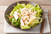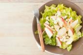 miskę świeży zielony sałatka na metalu teksturowanej tło