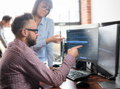 Zdjęcie "Inteligentni młodzi studenci studiujący na Uniwersytecie z różnymi kolegami z klasy wieloetnicznej. Uczeni współpracują w College Room on Computer Science Project" może być wykorzystywane do celów osobistych i komercyjnych zgodnie z warunkami zakupionej licencji Royalty-free. Obraz jest dostępny do pobrania w jakości wysokiej rozdzielczości do 5760x3840.
