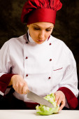 szef kuchni z miski i bat