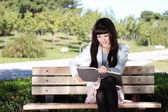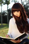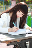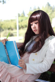 uśmiechający się azjatycki student studiuje.