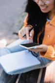 Nastolatka siedzi przy biurku, pochłonięta telefonem po szkole, otoczona książkami i laptopem.