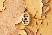 Zardzewiały metal drzwi wentylacyjnych na streszczenie ścian betonowych.
