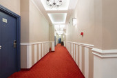 Zdjęcie "Hotel korytarz z dwoma drzwiami" może być wykorzystywane do celów osobistych i komercyjnych zgodnie z warunkami zakupionej licencji Royalty-free. Obraz jest dostępny do pobrania w jakości wysokiej rozdzielczości do 5760x3840.
