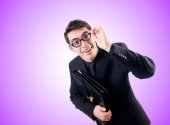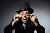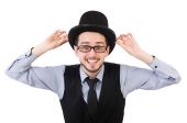 Młody człowiek w czarny strój z kwiat na białym tle