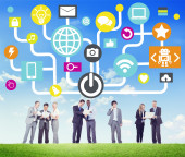 Ludzie biznesu za pomocą globalnej łączności Social Networking