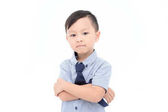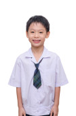Portret zbliżenie Azji chłopiec dziecko noszenie tradycyjne tajskie sukienka patrzeć na aparat na białym tle.