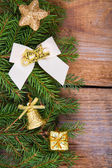 małe pudełko złote w pobliżu Czerwony koralik i łuk bliska