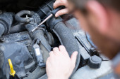 brudny samochód mechanik ręce badania samochód samochodowe Naprawa stacji paliw