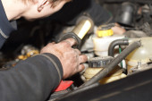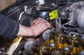 brudny samochód mechanik ręce badania samochód samochodowe Naprawa stacji paliw