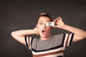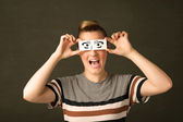 Młoda dziewczyna trzyma papier z zielonym znakiem dolara