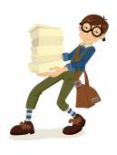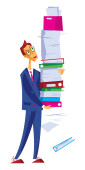 Biznesmen z plikami pokazuje Executive handel i pomoc