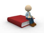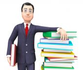 Biznesmen czytanie książek zawiera podręcznik informacji i handlu