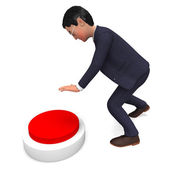 Biznesmen obok przycisku reprezentuje znak Stop i Biz